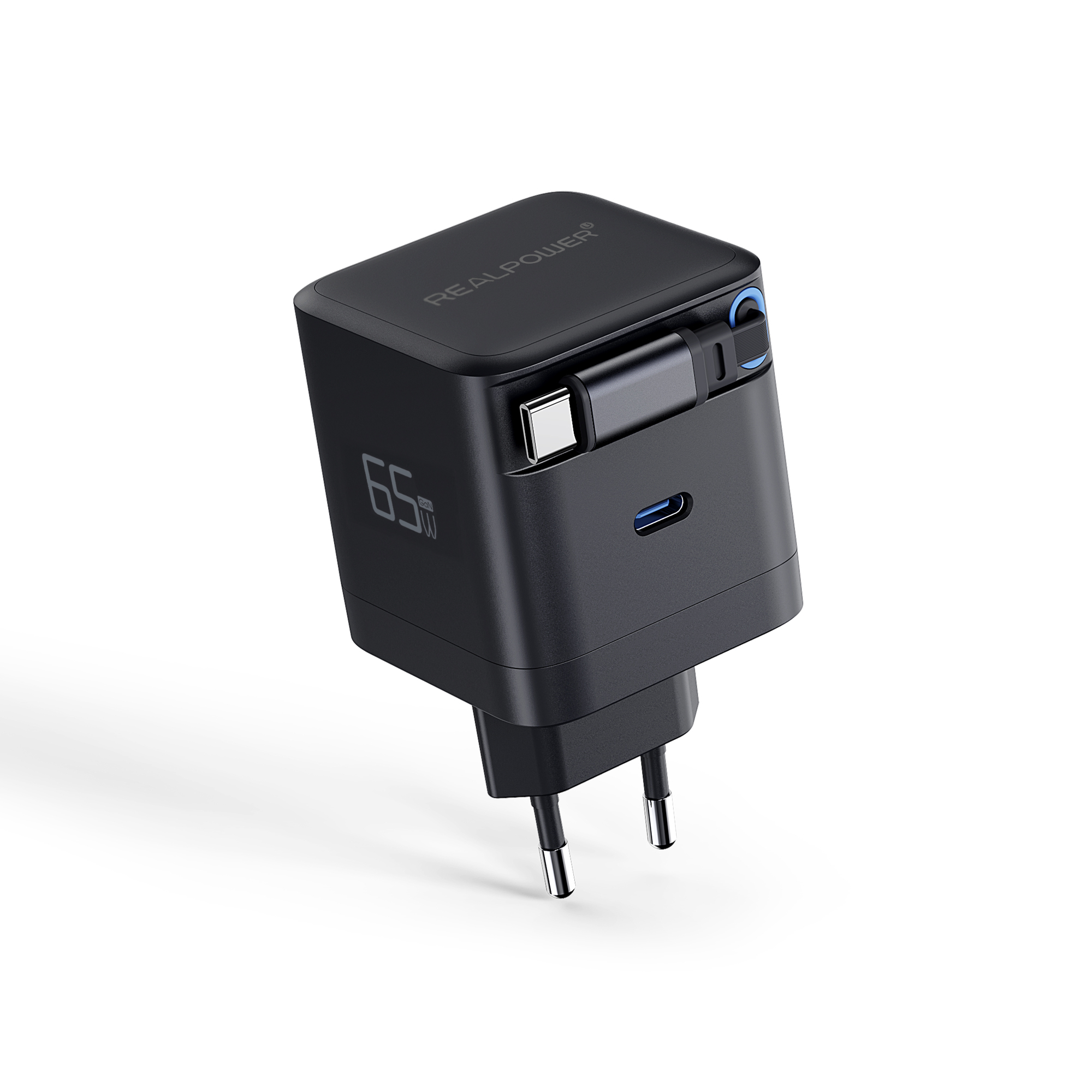Entdecken Sie den leistungsstarken REALPOWER 65 Watt GaN Charger, der mit seinem kompakten Design ideal für unterwegs ist. Dieser Ladeadapter ist nicht nur leistungsstark, sondern auch äußerst praktisch. Er verfügt über ein integriertes, 70 cm langes Kabel mit einem Type-C Anschluss, das sich bei Bedarf mühelos herausziehen lässt. So können Sie Ihre Geräte schnell und einfach aufladen, ohne sich um ein zusätzliches Kabel kümmern zu müssen. Zusätzlich bietet der Charger einen weiteren USB-Type-C Port, der es Ihnen ermöglicht, mehrere Geräte gleichzeitig zu laden. Egal, ob Sie Ihr Smartphone, Tablet oder Laptop aufladen möchten, dieser Charger ist die ideale Lösung für alle Ihre Ladebedürfnisse. Mit seiner fortschrittlichen GaN-Technologie gewährleistet er eine effiziente Energieübertragung und schützt Ihre Geräte vor Überhitzung und Überladung. Kompakt, leistungsstark und vielseitig - der 65 Watt GaN Charger ist der perfekte Begleiter für alle, die Wert auf Effizienz und Mobilität legen.